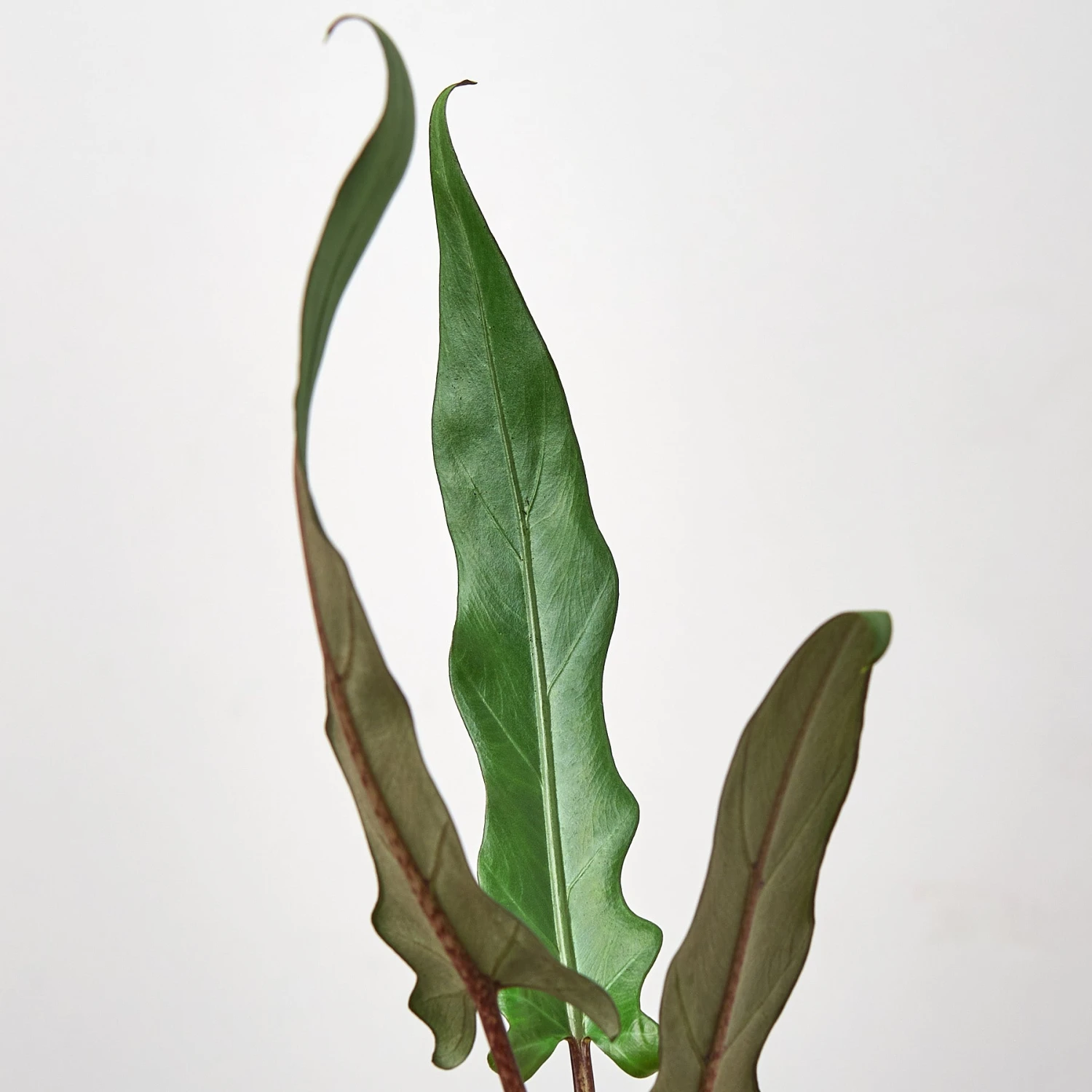 - Description: The long, spear-shaped, and glossy dark-green to purple leaves with scalloped edges and reddish undersides stand on tall petioles of purple to brown shade. You can easily get an illusion of an artificial plant due to the thin and stiff leaves with dual shades. Furthermore, each leaf may get as long as 2 feet and make the plant look like one of its own kind.