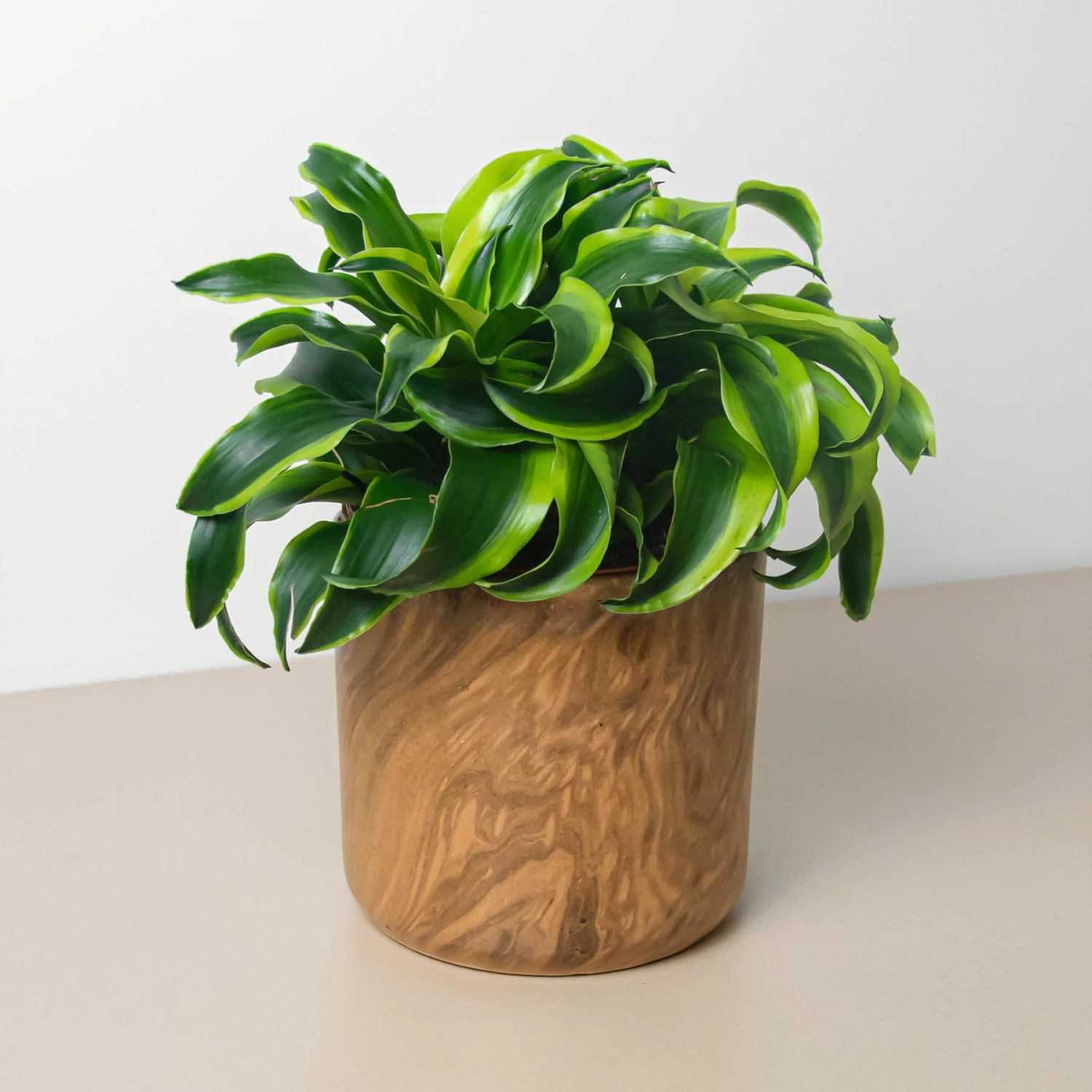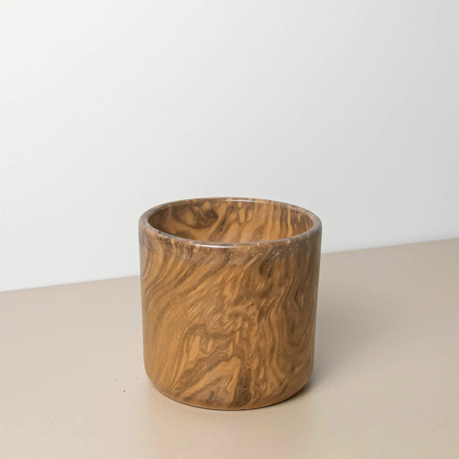 This ceramic cylinder planter has a unique brown swirl design. Sized to fit a 6″ plant perfectly this ceramic pot works for both indoor foliage and succulents.