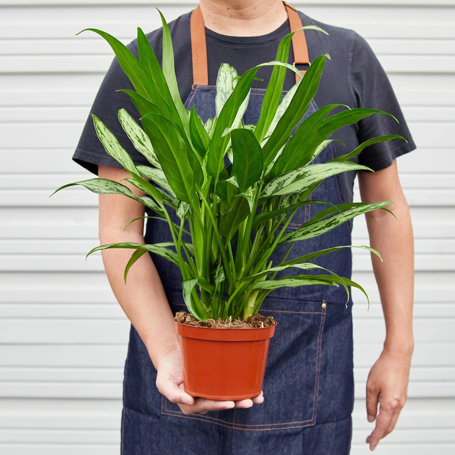 - Description:¬†The Chinese Evergreen also known¬†as Aglaonema, it is an easy plant to grow and care for. Native to Asia it just about tolerates any indoor condition. ‘Cutlass’ is a hybrid selection of Chinese evergreen that features long, slender, lanceolate, grey-green foliage with darker green margins and streaks. Mature plants will reach up to 4′ tall with a similar spread.