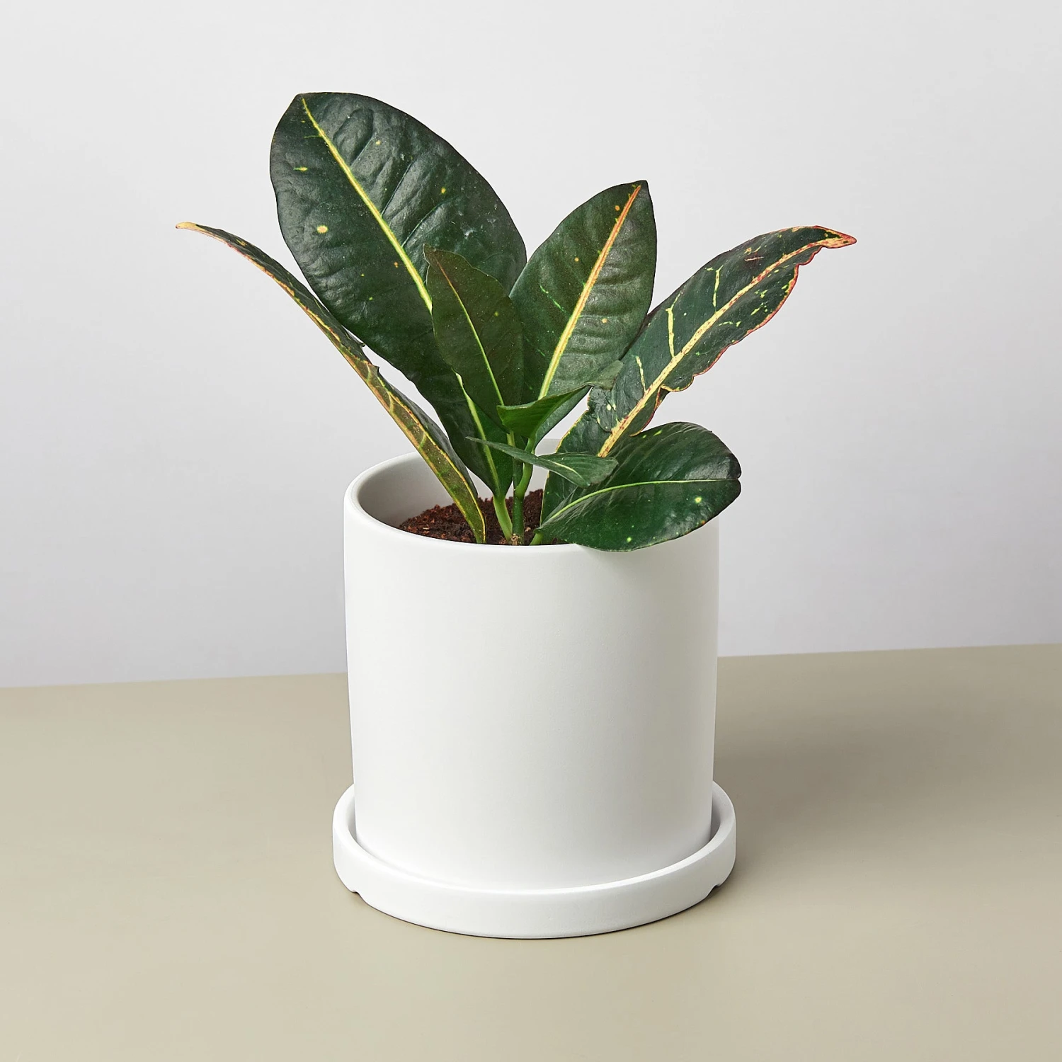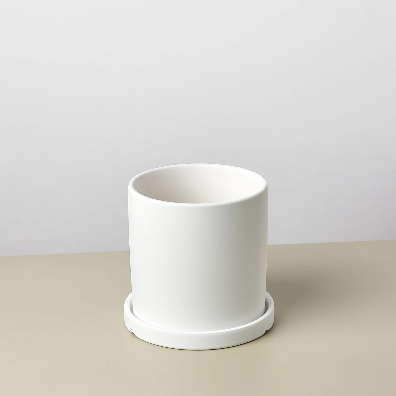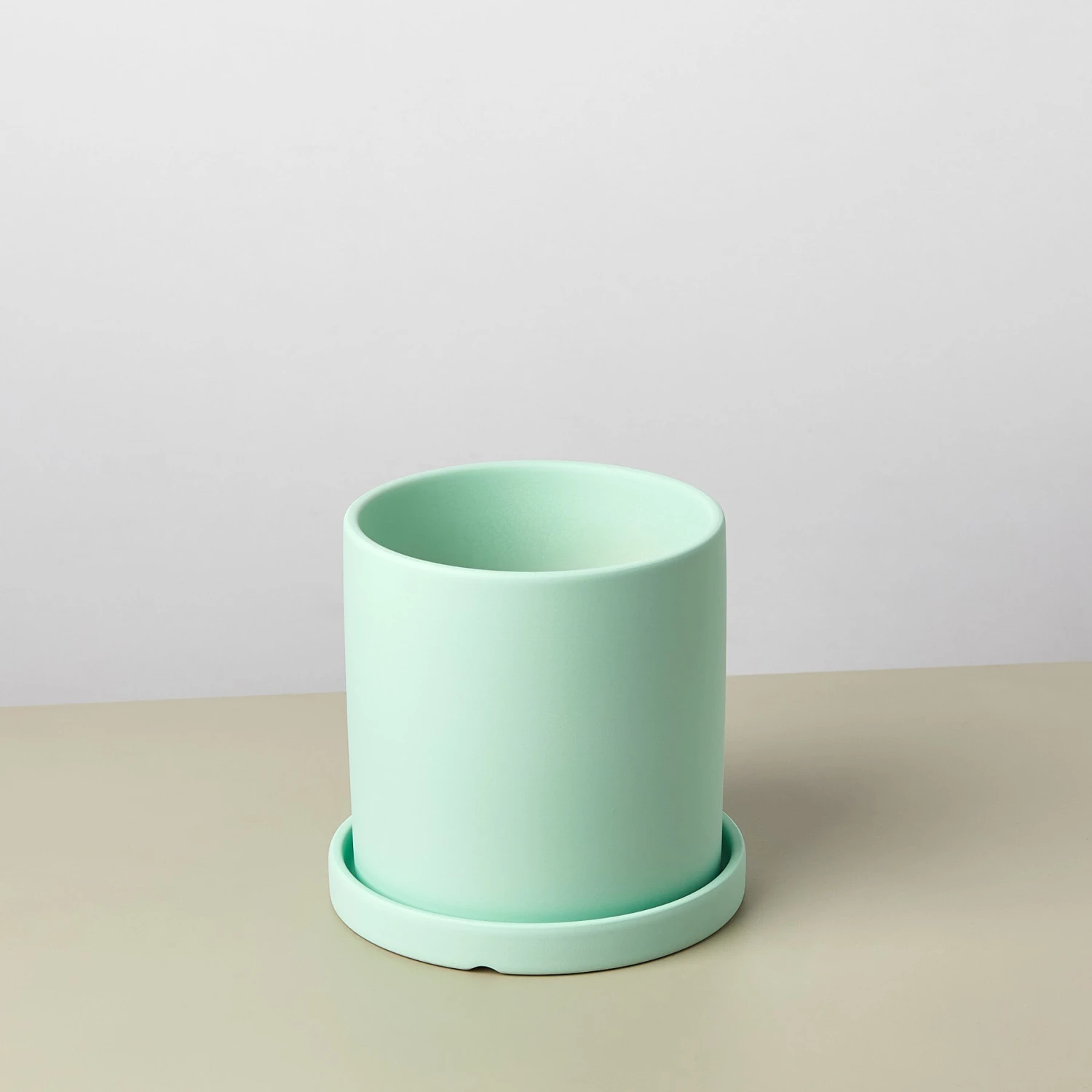 - Description: The ceramic cylinder planters have a saucer so you don’t have to worry about your plant dripping water. The planters come in five colors.