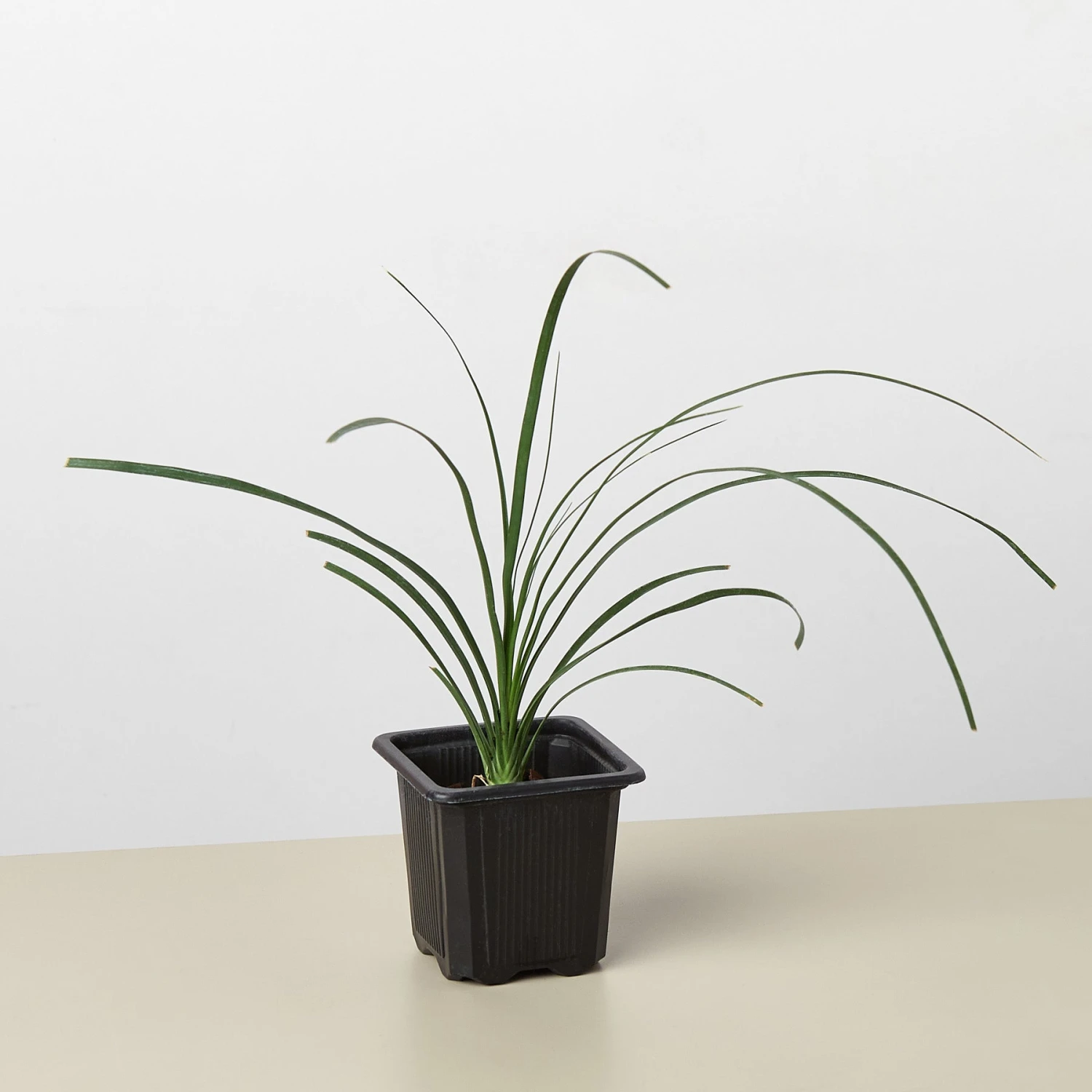 - Description: The ponytail palm is an evergreen perennial native to Eastern Mexico. It has become an ornamental plant due to its ability to thrive indoors and retains water through its swollen trunk. Much like a palm tree this plant can grow to be 30 feet tall in its maturity.