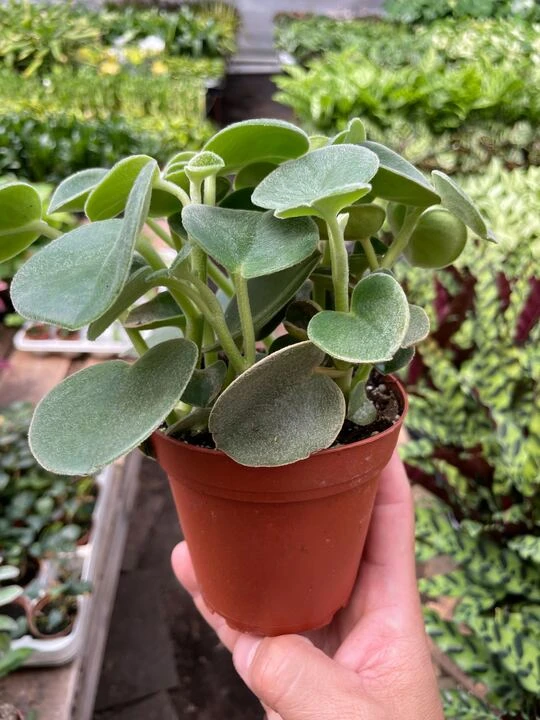 - Description: Peperomia ‘Felted’, is a popular, low-maintenance houseplant with velvety, heart-shaped leaves and a subtle silver-gray color. The leaves are covered in fine, white or silver-gray hairs that give them a fuzzy or felt-like texture, earning the plant its nickname “Amazon Fuzz”. Peperomia incana “Felted” has a compact growth habit and semi-succulent qualities that make it easy to grow.
