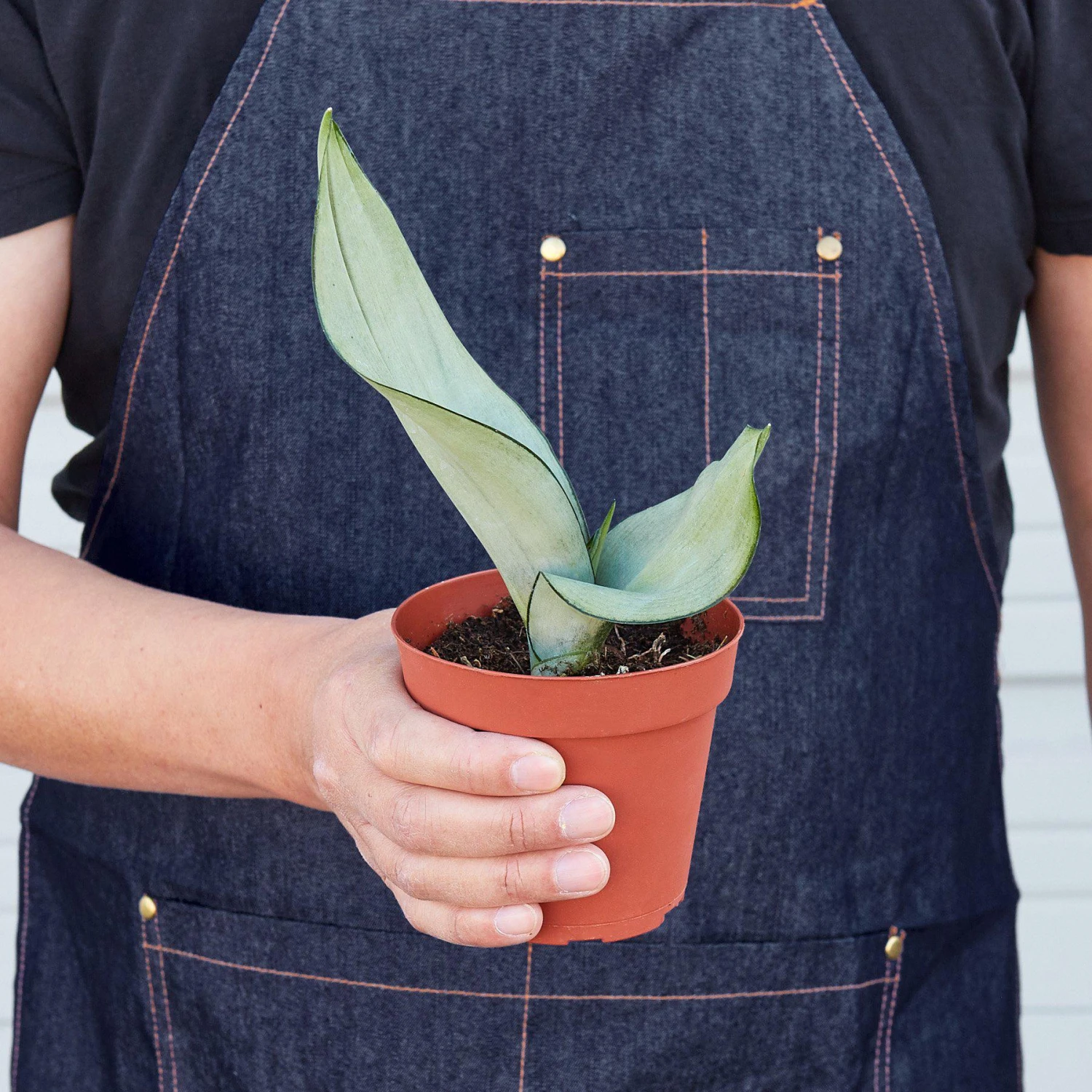 - Description: This evergreen perennial native to tropical West Africa and Nigeria, is a great addition to any office or household as a natural air purifier. Snake plants have strong and sturdy, sword shaped leaves which are drought tolerant and retains the plants water. This plant can be easily propagated by leaf cuttings so you can multiply your family of snake plants or give them away as a gift. This particular variety has a washed out greyish-green look on the entirety of the plant making this a very unique addition to any plant collection.