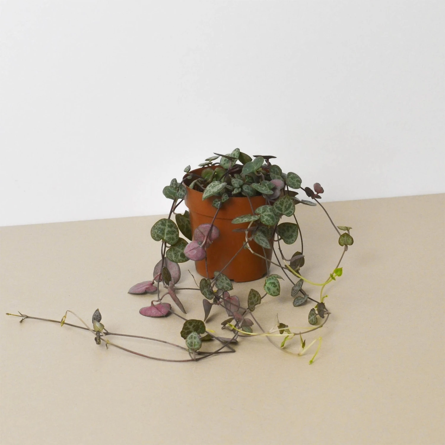 - Description: The String of Hearts is a trailing succulent with heart-shaped leaves and delicate, vine-like stems. It’s easy to care for and thrives in bright, indirect light. This low-maintenance plant is perfect for hanging baskets or draping from shelves. It’s also known for its unique, silvery-green foliage that adds a touch of elegance to any space.